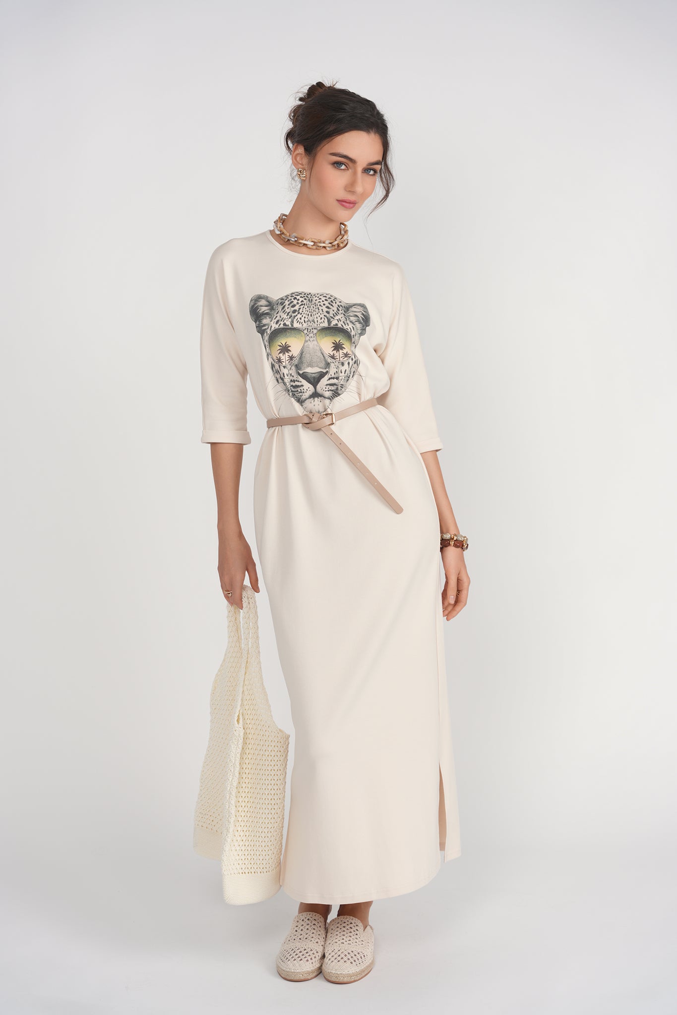 Smocked Shoulder Dress- Light Blue Florals on Green