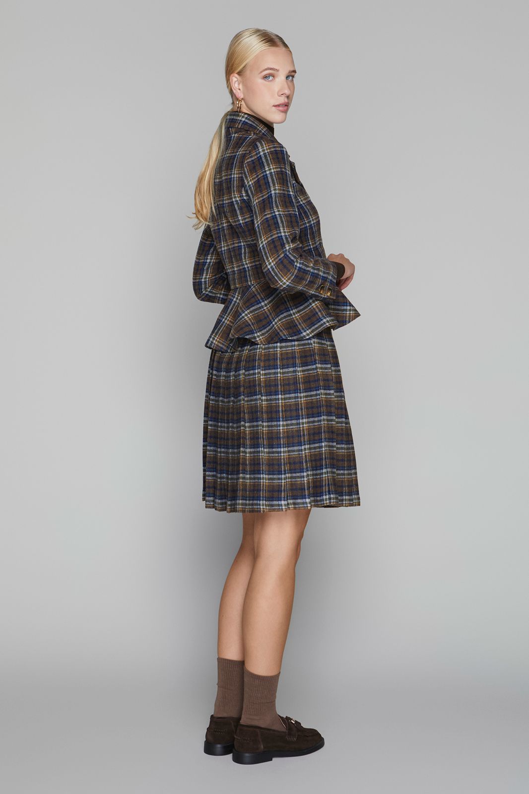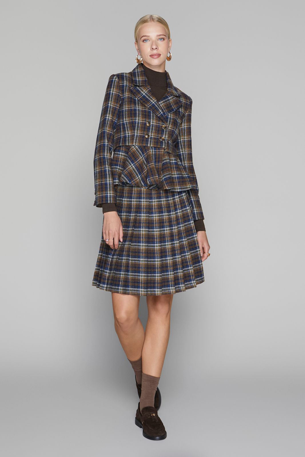 Briar Pleated Skirt 23" Short- Cocoa/Navy Plaid